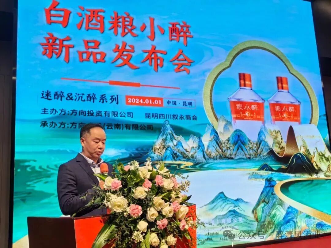 1月1日,白酒投集团醉清风酒业与方向投资公司联合推出“粮小醉”品牌白酒新品,在昆明举行发布会,精彩亮相。