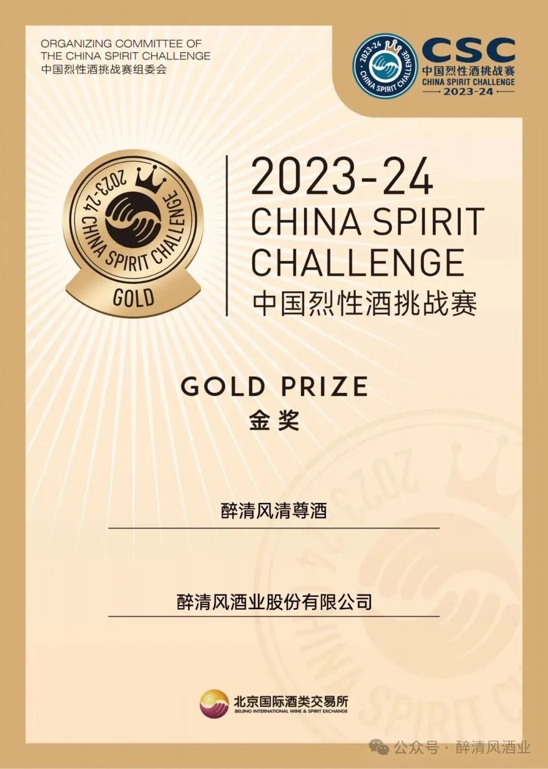 1月12日,由北京酿酒协会指导,北京国际酒类交易所主办的2023-24中国烈性酒挑战赛,醉清风酒业产品“清尊”、“清春”荣获金奖。