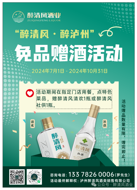 7月1日,醉清风酒业以“醉清风·醉泸州”为主题在云南、泸州两地开展免品季活动。